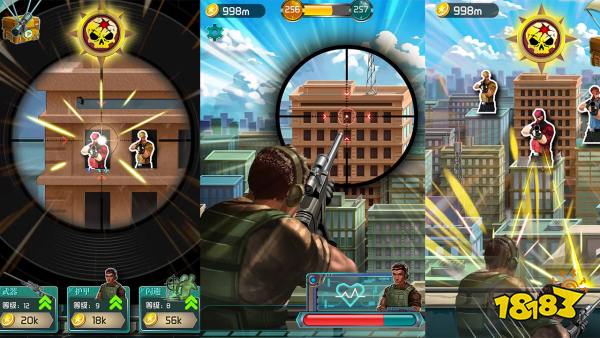 《狙击行动:代号猎鹰》是一款纯粹的狙击枪战手游。玩家扮演一名城市义警,终日躲在高楼大厦的阴影中,用狙击枪消灭危害城市的邪恶力量。目标位置有远又近,近处可以打出高伤害,但也容易暴露位置,所以需要穿戴护甲,携带医疗包;远处可以轻易隐蔽,但也不容易瞄准,打不出高伤害,所以需要配备相应型号的瞄准镜,升级枪械等级,提高伤害。