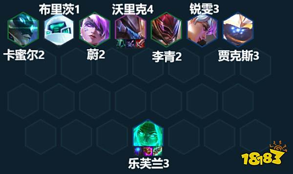 阵容组成:卡蜜尔、布里茨、蔚、沃里克、李青、锐雯、贾克斯、乐芙兰