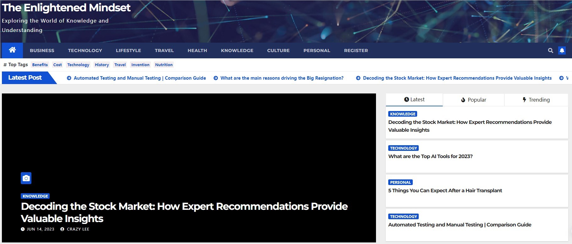 The Enlightened Mindset(网址:https://www.lihpao.com/)是一个声称通过点击率非常高的文章来“探索知识和理解世界”的网站,它的特别指出就在于,这些文章从头到尾似乎都是由人工智能生成的,从文字到投稿者,甚至包括 AI 生成的非常疯狂的图像。