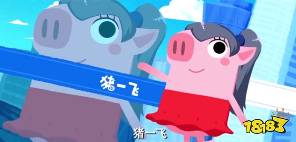 胡一菲的化身猪猪是猪一飞,身穿红衣小短裙,扎着和胡一菲一样的马尾辫,这一身应该是按照胡一菲在第一季中当婚礼主持人时的着装设计的吧