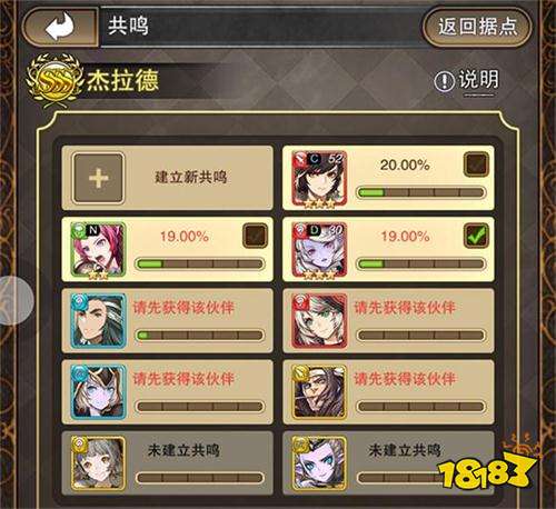 每个角色都有不同的共鸣伙伴要求,点击建立共鸣,就会随机与一个角色进行共鸣,不同的角色会带来不同的属性提升