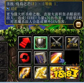 技能分级:伤害为10000*技能等级+力量*(10+技能等级*20)伤害,晕眩3/4/5秒,对不死族敌人伤害*1.5。如果带圣剑,伤害翻倍一律乘以2。冷却85/65/50s