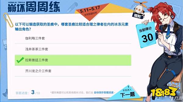 崩坏3周周练是一个非常好的帮助我们理解每个角色玩法的一些内容,我们在游戏中每周都会遇到各种角色的一系列问题,下面小编带来的就是崩坏3周周练理之律者问题答案汇总,一起来看看我们有什么值得注意的吧!