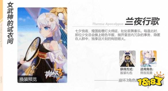 ——德丽莎SP角色朔夜观星新服装「兰夜行歌」即将登场。二、获取方式