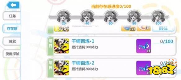目前,信仰结晶能通过存在感的日常、周常以及各个活动获得:
