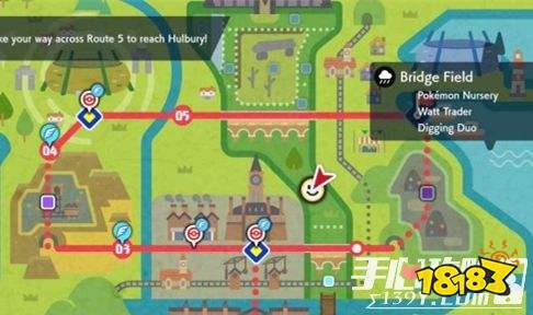 从【桥间空地】旷野区域向北走直到看到有一条通向左边的小路,在城墙旁边有一片草丛,还有一个宝可梦巢穴。