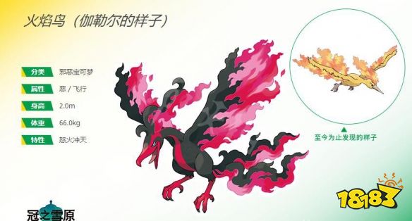 宝可梦剑盾火焰鸟厉害吗?这是将在冠之雪原中登场的传说宝可梦,有些玩家对它的特性不是很了解,这里给大家带来了宝可梦剑盾火焰鸟招式特性介绍,一起来看下吧。