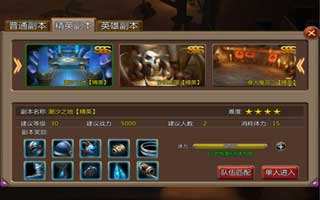 副本在角色等级达到12级即可开放,按难度系数分为普通副本、精英副本、英雄副本。进入不同副本分别消耗不同体力,这也是根据难度系数不同来的但副本奖励可是有大大的诱惑哟。在部落中每日限额体力为60,一旦消耗体力,体力将以1小时恢复6点体力值恢复,这样的速度小编觉得稍微慢了点,但这也提醒兽友们一定要选择适当的副本再进入。