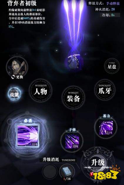 主动技能 背弃者:8s的冷却时间和20点的神火消耗,可以频繁的用来清小怪或者触发三发齐射的削弱防御力效果。伤害值:★★★☆☆冷却时间和消耗:★★★★☆功能性:★★★★☆被动技能 晨昏交替:每提升自身暴击维持4/4.5/5/5.5s 每6s刷新一次效果。提升至满级之后基本就是一个持续性的暴击buff了,比较适合爆伤流打法。