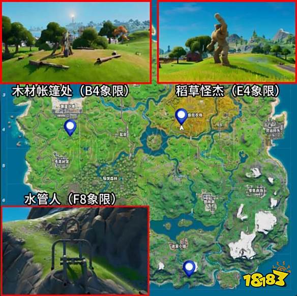 这三个都是本赛季比较有特色的建筑物,位置和样子三门给大家标注在地图上了,建议在百分激斗完成(先去做水管人比较容易哦)。