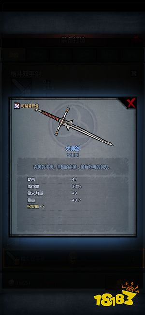 大剑士推荐双手剑要么用巨剑伤害高,要么用大师剑,+5招架,打塔用巨剑,打7盾用大师剑,大剑士不上70级打7盾还是很脆的