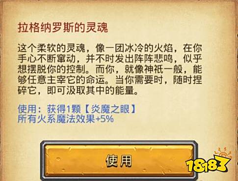 这个是拿神器碎片必须要碰到的,点了之后会给个魂,把魂用掉会给个炎魔之眼,之后合成神器需要用到。