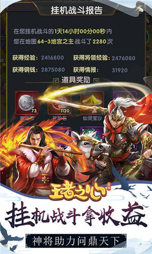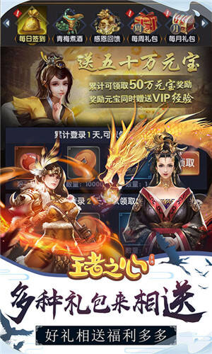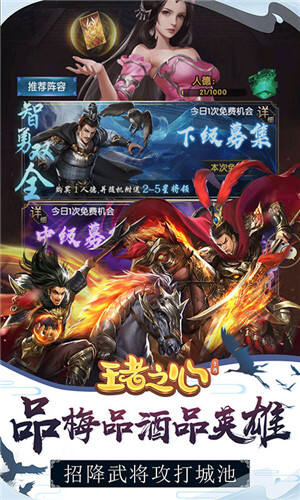 穿越去那群雄割据、英雄辈出的时代,你能够率领三军,称霸天下吗?江山大地人才济济,你能够慧眼识英雄,成为一名称职的主公吗?无论是烽烟万里的豪情壮志亦或是江南水乡的红袖添香,在这里都能够体验得到。《王者之心》攻打城池,招降武将,建造都城,直至问鼎天下!更有神秘探险收服上古兽灵,后宫美人共你举杯邀月,快来一统天下吧!