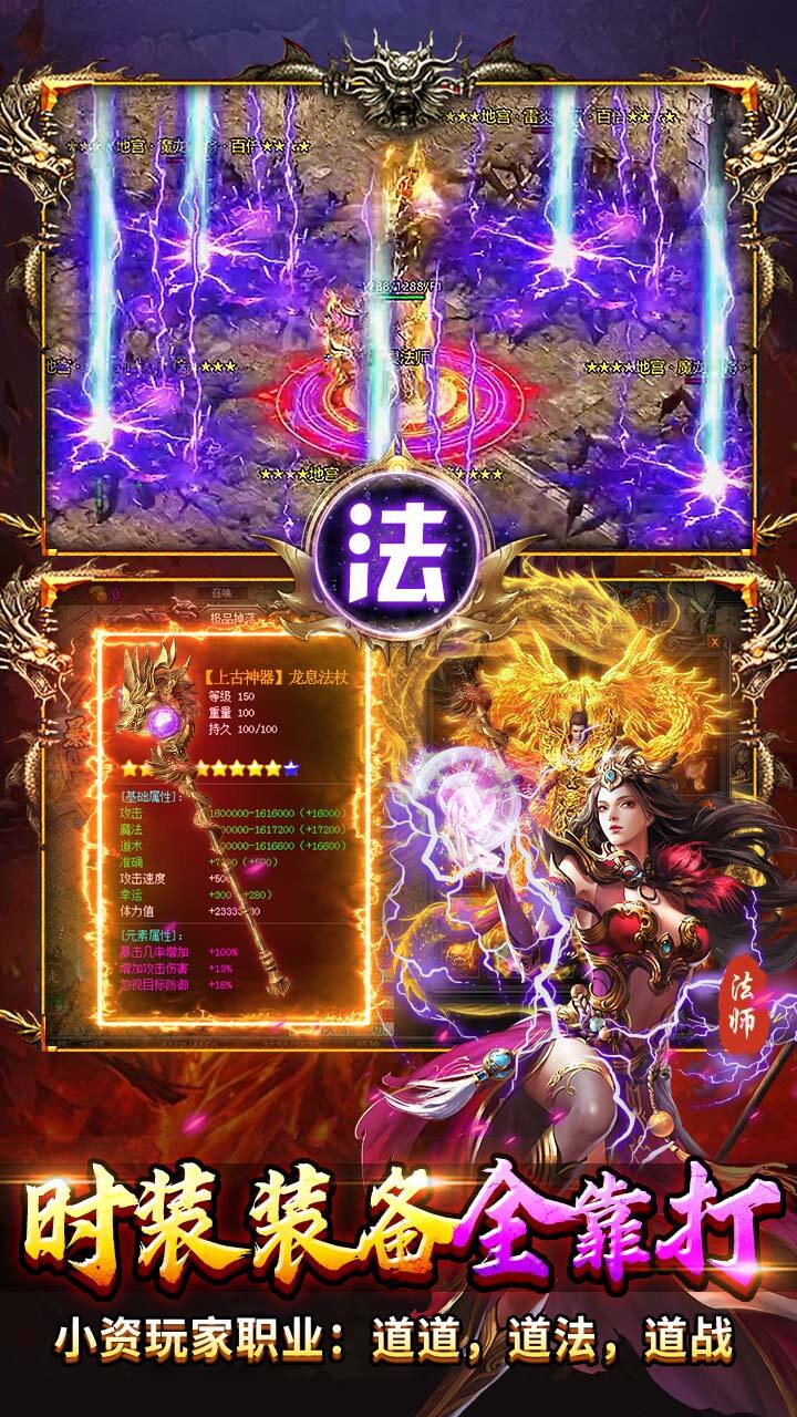 经典合击复刻升级:还原战、法、道三大经典职业,解锁元神系统后可任意搭配职业组合 —— 战士 + 道士的 “劈星斩” 破防暴击,法师 + 法师的 “天怒惊雷” 范围清场,不同组合触发专属合击特效,彩虹光效炸开瞬间满屏伤害,观赏性与战力双在线。