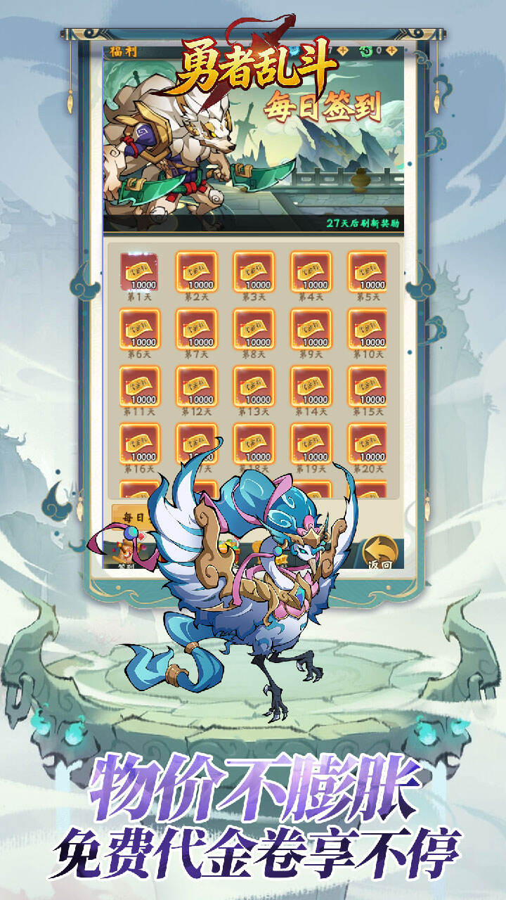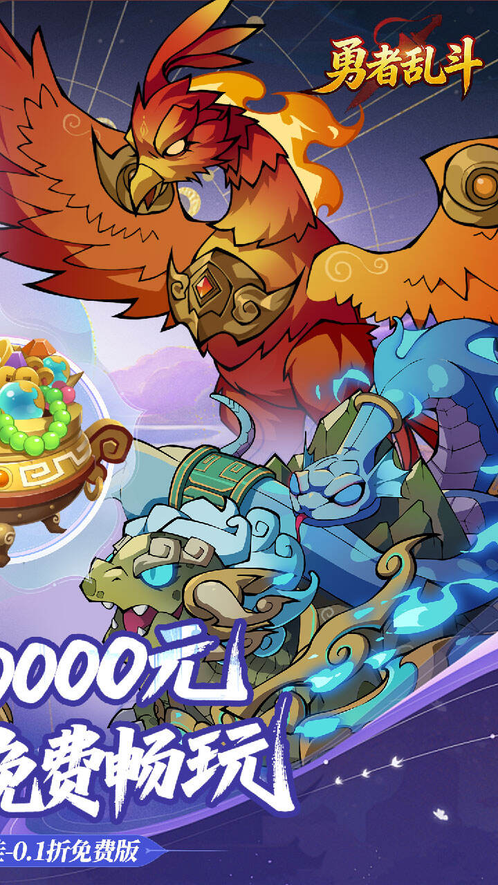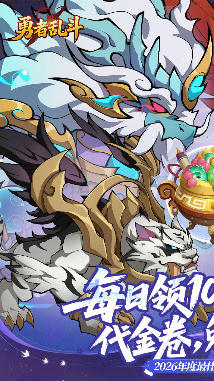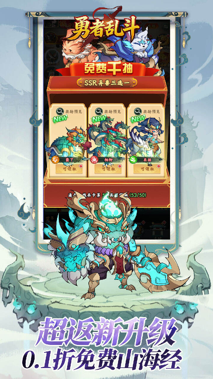 《勇者乱斗 》喜欢玩免费版咸鱼的朋友有福了、这是一款以山海经为题材的开箱卡牌手游、每天上线领10000代金券、真正实现了免费零氪版,游戏中涵盖山海经所有奇珍异宝和山海神兽、无限孵化异蛋、融合多种PVE/PVP玩法和趣味养成路线、全自动托管放置解放双手,无需操作,满配山海图鉴、带着自己组建好的异兽去平定四海吧~
