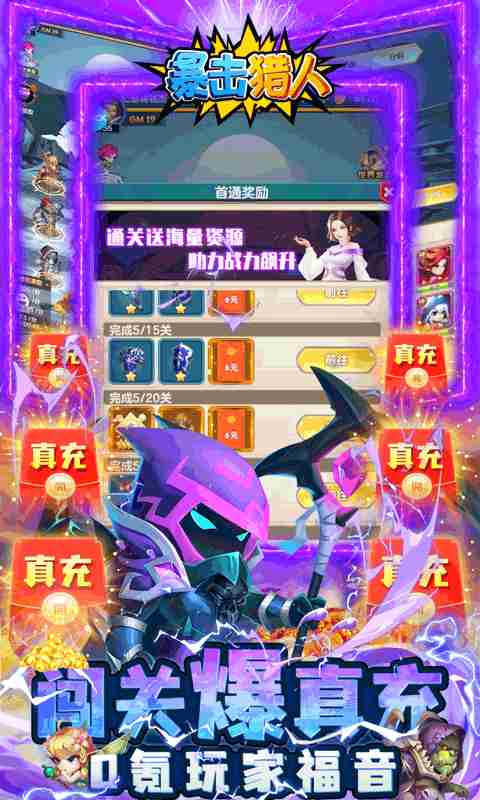 《暴击猎人(送神盾撸真充)》最燃动漫卡牌火爆上线,上线福利爆满,GM特权、神盾特权免费送。版本更新加强福利元素满满, 闯关刷真充,最强神族英雄免费送。同时还增加了宝石、神 兽、圣灵、女神系统,在升级卡牌的同时,用其他的辅助玩法,给与卡牌本身更大的提升和更多的乐趣。 玩家可使用的成品卡牌更多,阵容搭配更加灵活,更具策略性。在传统的关 卡战斗之外,增加了战神塔和十二星座玩法, 更多的战斗系统为玩家带来更多的乐趣和奖励。增加了竞技场和跨服征战功能,让玩家可以有一个切磋的平台, 并且不仅仅局限于本服务器,还可以和其他同跨区服务器 的玩家互相 PK,增强竞技性和策略性。