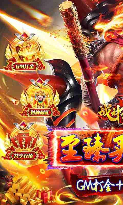 《战神霸域》真独家西游传奇,全新买断共享打金玩法,终极打金特权激活后可享受天帝宝库、神王赐福、财神献礼等多个活动福利,更有专属神位商店,升级神位等级可1灵符购买所有道具,每日登录送百万灵符+神位经验!新增共享充值玩法,全服的充值可共享,有大腿赶紧抱紧!专属独家GM打金玩法,打怪送称号+坐骑+羽翼时装,全新的猴王买断打金传奇!所有地图爆大量充值,无限打金!