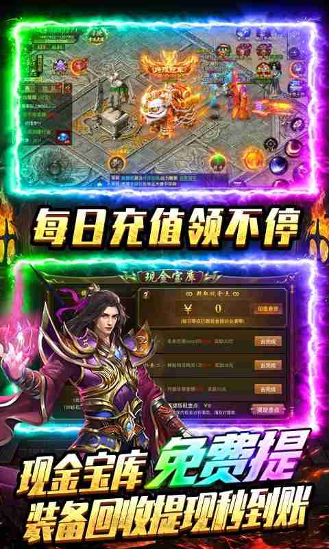 1、开局送满VIP10 2、登录送绿毒开天、专属称号:万物皆可爆、1000元充值卡 3、送10阶战宠憾天龙王 4、现金宝库每日任务提现 5、在线送2亿灵符 6、好评免费送谁主沉浮(称号*1)、羽毛*10、1000颗钻石*1、金条*2 7、充值比例1:10000元宝,额外赠送1:100钻石,返利货币为钻石(无法交易)