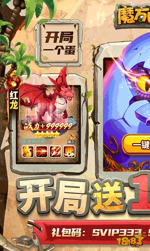 1、开局即送VIP10,输入礼包码免费领10亿元宝; 2、闯关无限制刷充,全自动闯关升级; 3、玩3分钟孵化传说宠物蛋,助你战力飙升; 4、在线送充值,每月白嫖4950元现金卡,签到升级领不停;