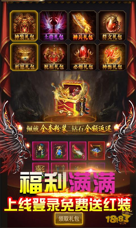 上线送10万钻石,100万元宝,红装体验装,送百万真充称号 升级免费送万充,霸服再送万元红包 你敢升,我敢送,升级秒送充值卡 在线10分钟,白嫖50元充值卡 充值1元获得648元真充卡 每日充值送大礼,充的越多送的越多!