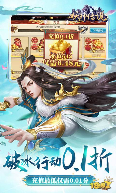 充值优惠:vip首充/续充均有折扣,妖神传说低至0.10折起