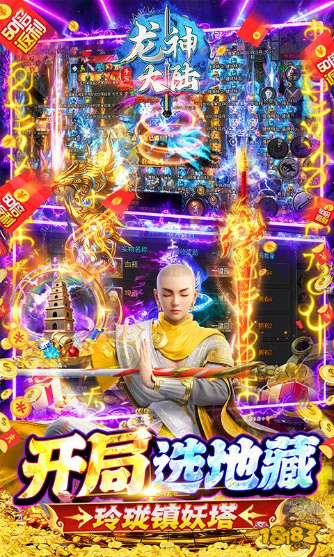 ★开局选地藏 ★开局送5000元真充卡 ★任意充值50倍真充返利 ★送万元真充卡 ★送清凉夏日套装 ★送玲珑镇妖塔 ★送百万元宝 后缀说明:任意充值50倍返利