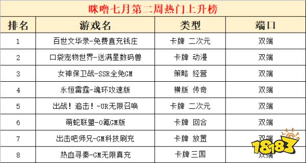 以下为大家整理了咪噜七月第一周的热度上升榜单,以及前三名游戏的详细介绍,感兴趣的小伙伴可以在免费下载体验一下,更多好玩有趣的bt游戏可以点击页面上方链接下载咪噜bt盒子查找~