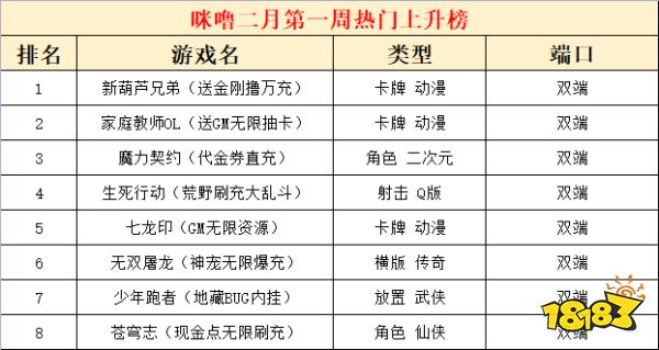 2023二月份第一周热门游戏是哪些?哪款游戏拥有本周最高热度?本周热度最高的是《新葫芦兄弟(送金刚撸万充)》这款卡牌动漫手游,下面让我们一起来了解一下前几款比较热门的游戏信息!