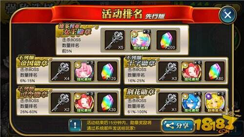 5.活动结束后,将根据BOSS数量被击杀的进度,所有参与活动的亚瑟们都可以获得对应排名的奖励,最高可以获得水晶奖励。