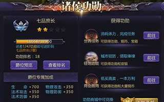 1. 功勋爵位:世界任务等功勋会提升人物的爵位,爵位可以给大家带来额外的战力加成;