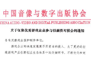 关于征集优秀游戏企业参与投融资对接会的通知