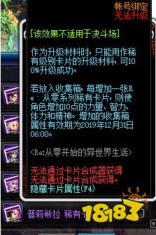 以上就是DNFre从零神器卡片一览和DNF从零开始的异世界生活收集箱属性的相关内容,希望能对各位有所帮助,最后祝大家游戏愉快~