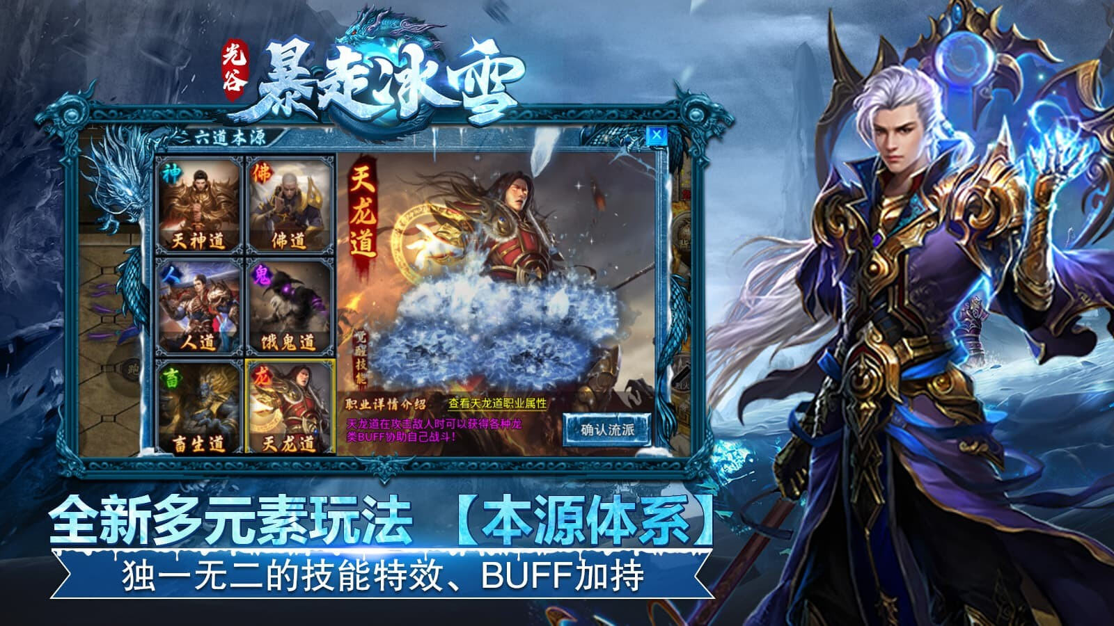 光谷暴走冰雪是一款1.85单职业传奇手游,在光谷暴走冰雪中,全新纯散人攻速冰雪,诸多特色玩法功能,六道职业:天神、佛道、人道、饿鬼、畜生、天龙期待你的探索。
