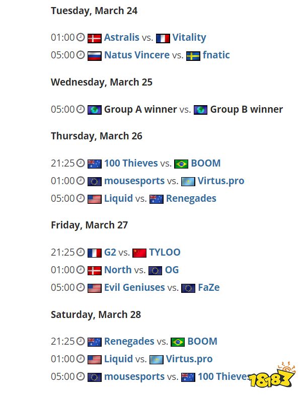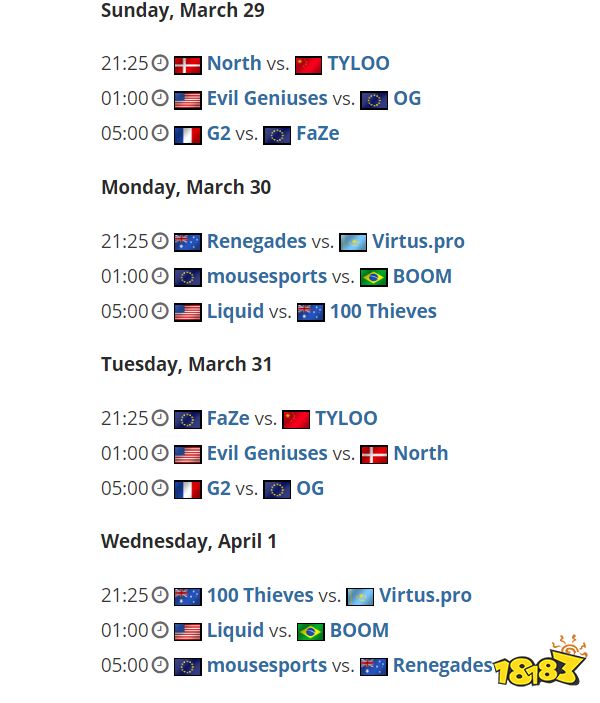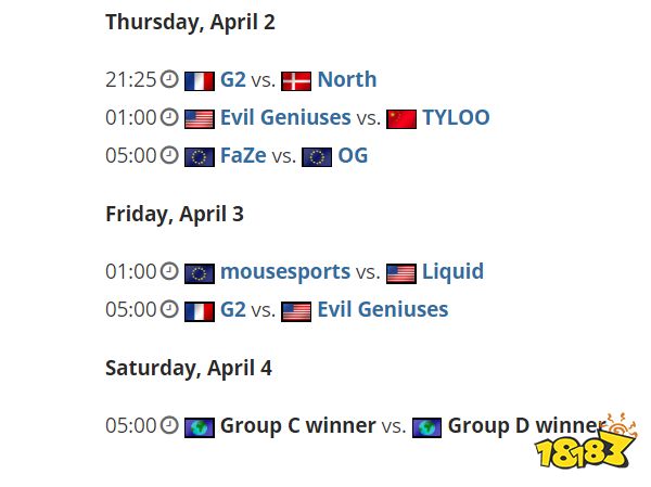最后是D组,由G2、EG和FaZe领衔,三支队伍的世界排名都比较靠前,但是他们不得不警惕最近风声水起的OG夺走他们的位置。与他们一同分到D组的还有TYLOO和North。