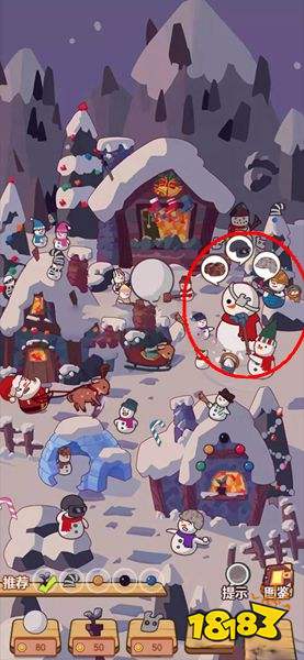 小玩法1:点击左侧圣诞老人前面的麋鹿,然后进入对对碰界面,过关后点前面的栅栏,然后点冰房子的雪人,然后点房顶的火柴,回头再点这个雪人。最后点击右边戴绿帽子和围巾的小雪人。