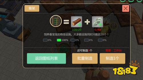 没有蚕丝是做不成衣服的,想要蚕丝,要先做一个蚕架,蚕架所需材料少但是作用可是很大的: