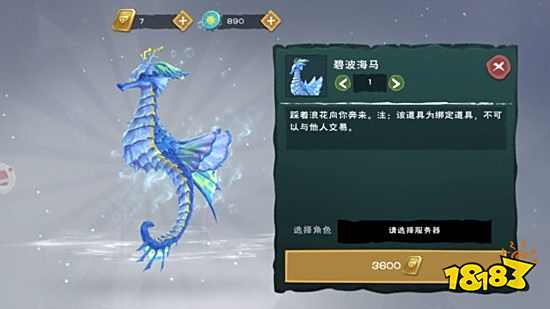 在商店花费18点券购买碧波海马礼包开启有概率获得