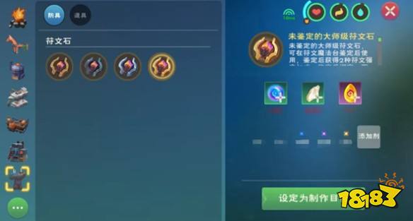另一个重要道具符文石,可提升魔法伤害,也需要在魔法台制作获得,会用到一些新材料,像是符文魔晶、符文原石、符文晶珀等。