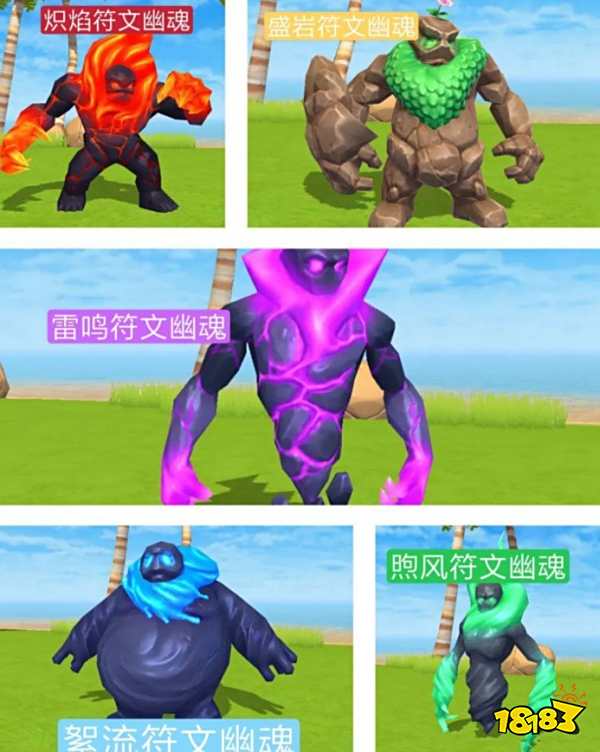 天空岛共有五种不同元素属性的符文幽魂,不可捕捉:
