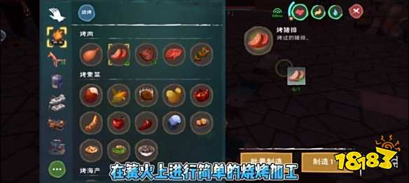 玩家还可以使用一些采集的食材在篝火上进行简单烧烤加工。