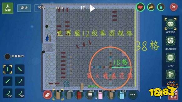 以家园规格为单位,例如世界服12级家园规格为38×38,而篝火的覆盖范围为一个半径约10的圆。