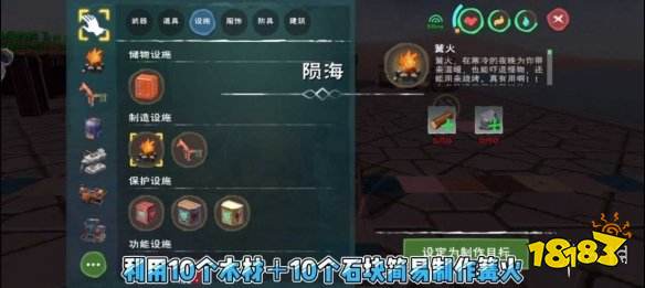 当我们还是个萌新的时候,生存指南就会提醒我们,可以利用10木材+10石块进行简易制作篝火来抵御深夜中的小鬼。