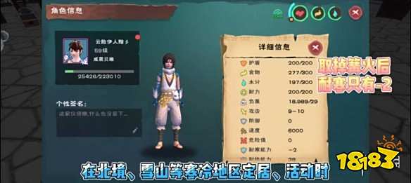处于篝火范围內能够提升人物角色10点耐寒能力,这是一个十分好用的功能,在北境,雪山等寒冷地区定居,活动时显得十分重要。