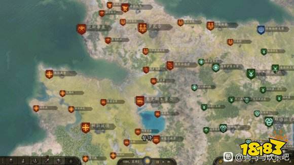 然后是看似弱小实则强大的绿国——巴旦尼亚,开局实力:5城8堡32村 8家族
