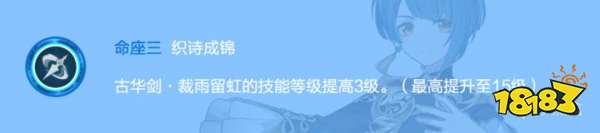 提升元素战技3级,剑雨伤害提高18%。