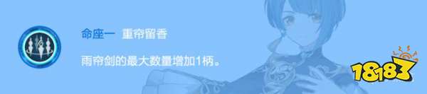 雨帘剑最大数量增加1柄,实用价值较低。由于一般都是Q产生的雨帘剑不会破碎,1命的提升只体现在持续时间到后多的1柄剑的少量回血,蚊子腿。