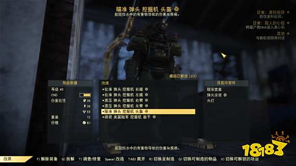 头部优先选VATS点阵外罩,像挖掘机这种没有VATS外罩的,可以选内部感应器或者瞄准银幕。