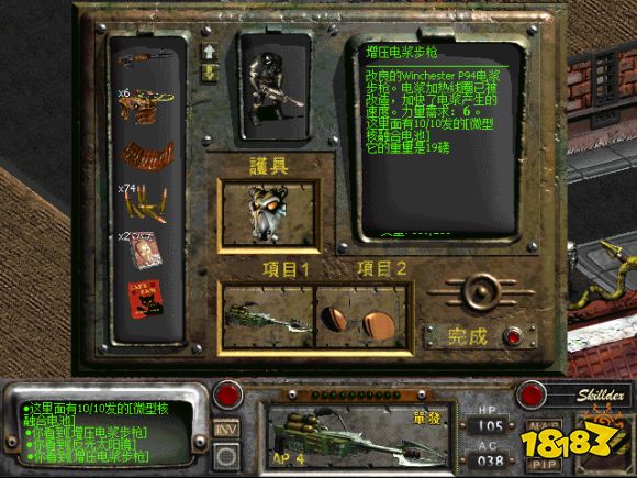 其实这东西也是辐射系列的老常客了,最早出现于《辐射2》中,为英克雷的正式列装武器之一,也称为“温切斯特P94电浆步枪 “,初次登场的定位就是低射速高伤害的“手提电浆加农炮”(以至于我一度怀疑“P94电浆步枪”是一个错误翻译),发射价格不菲的微型核融合电池,还可以交给军火商加装增压装置进一步提升威力。