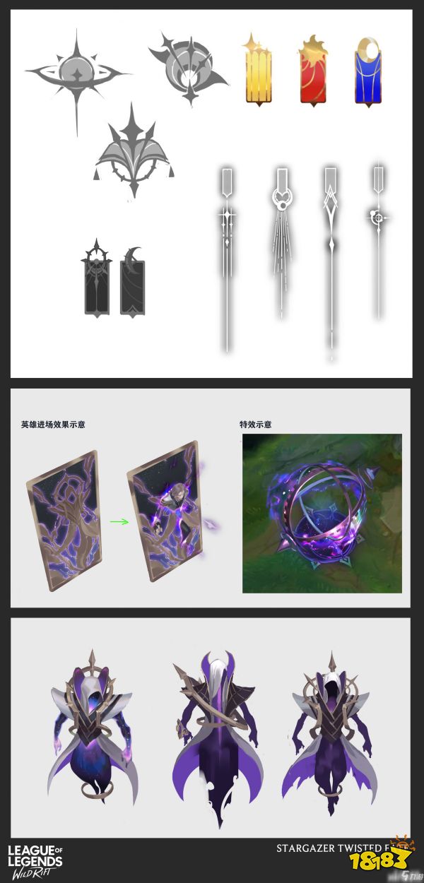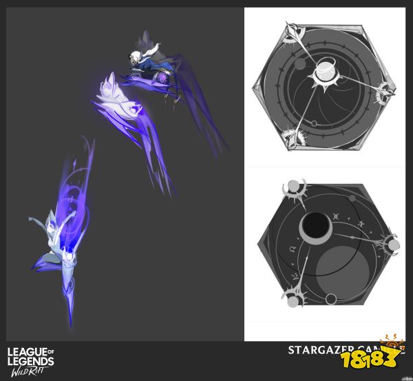 与英雄们活跃着的符文之地不同,皮肤的世界属于平行宇宙,有着全新的幻想主题。星域系列就是以星空为灵感,经过我们反复推敲和调整,最终确定以占星概念作为核心设计元素。