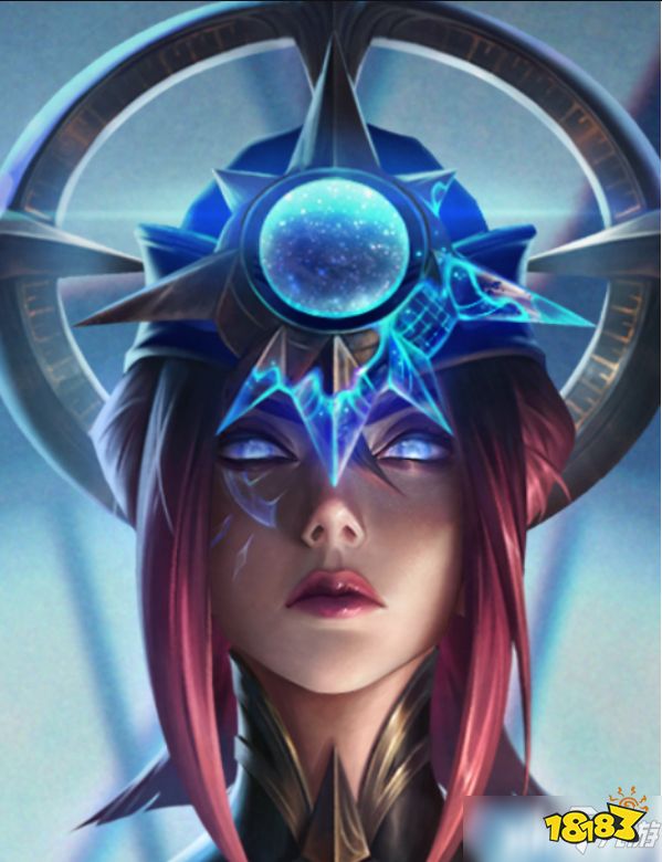 当然,最酷炫的还要数大招【命运】——崔斯特展开肩头的占星仪,占卜对手位置,一个星光环绕的蓝色星球降下一道光,在崔斯特的脚下形成一个星阵。选定地点后,同样还是那个蓝色星球再次降下一道光,崔斯特出现。而在这一过程中,敌方每一个英雄的头顶都会出现一只蓝色眼球,窥视着敌人的一举一动。
